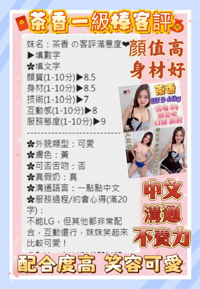 茶香-身高156/體重44/罩杯D/馬來西亞